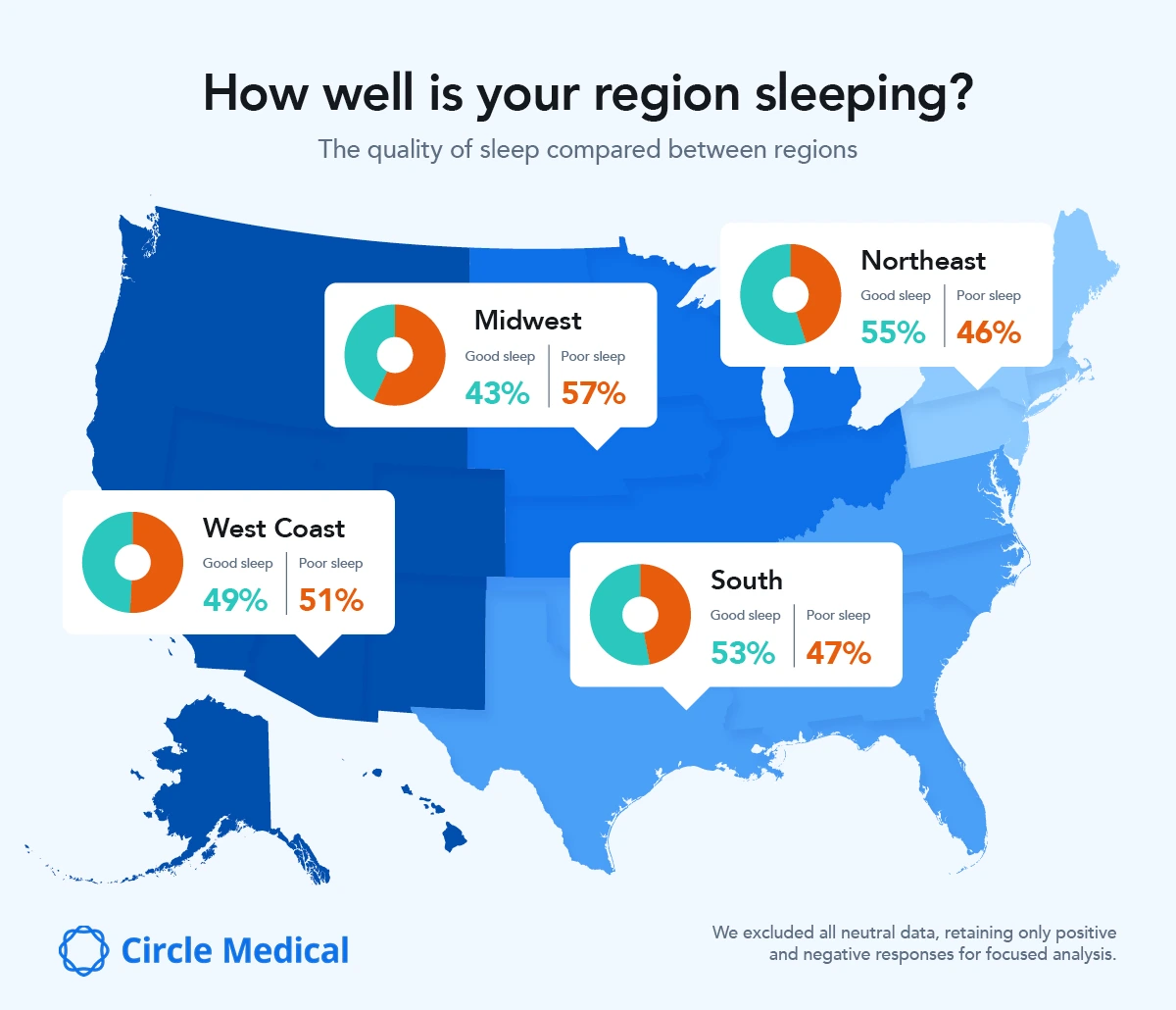 While poor sleep is a national concern, a closer look at regional trends revealed significant differences in both sleep quality and how people are coping with it.